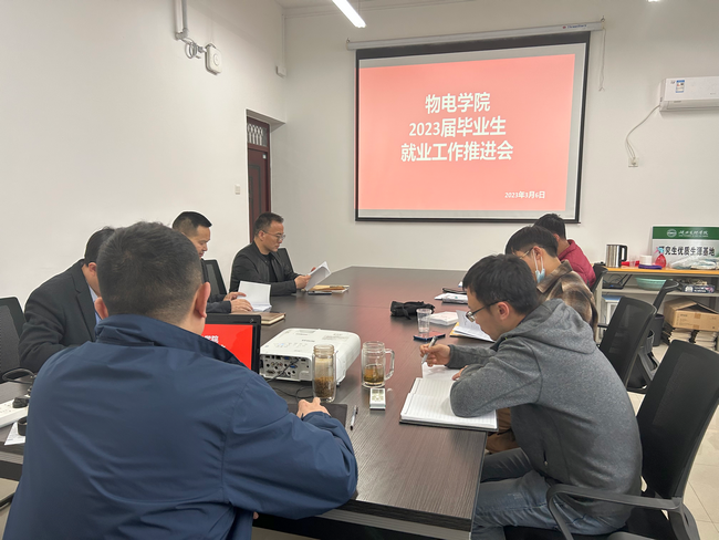 为更好地推进beat365英国官方网站2023届毕业生就业工作,3月6日下午,beat365英国官方网站在A503召开2023届毕业生就业工作推进会。会议由学院党总支副书记张玉龙主持,院长王绍明、党总支书记石义杰、副院长欧修龙、教研室主任余磊、团委书记刘鑫、辅导员李朦、范志鹏参加。