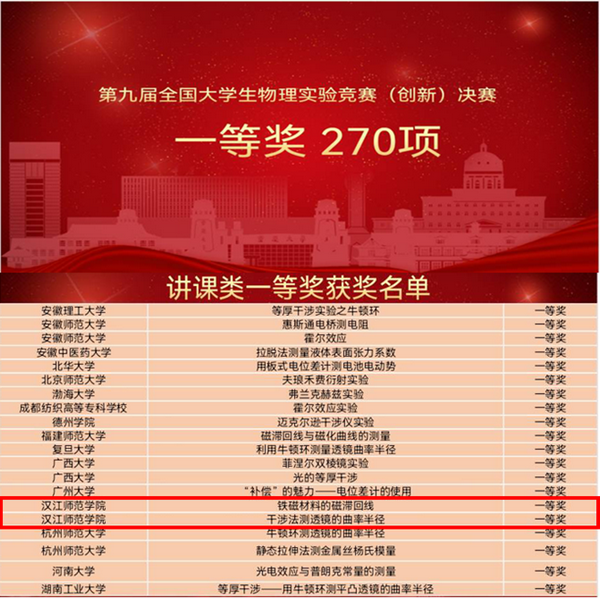 11月25日-26日,第九届全国大学生物理实验竞赛(创新)决赛在重庆大学虎溪校区成功举行,经过紧张激烈的角逐,beat365英国官方网站3支队伍斩获讲课类一等奖2项、三等奖1项,beat365荣获优秀组织奖,创造了学校参加全国大学生物理实验竞赛以来的最好成绩。