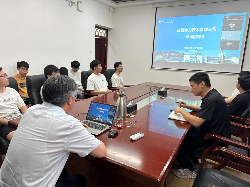 6月11日下午,beat365英国官方网站在崇文楼A503会议室举行远景动力技术有限公司线上专场招聘会。院分党委书记唐传球、副书记戴俊、学工办主任尹诗雅以及16名电气工程及其自动化和信息工程专业毕业生现场参会,部分毕业生线上参会。
