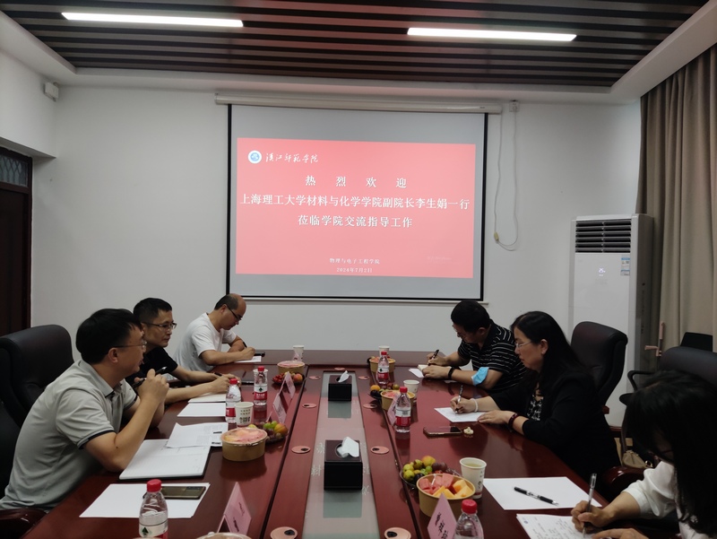 7月2日下午,上海理工大学材料与化学学院副院长李生娟、材料成型及控制工程系主任陈泽中、博士生导师曾祥琼等一行来我院进行洽谈交流。交流会在崇文楼A503会议室举行,beat365英国官方网站副院长欧修龙、化学与环境工程学院副院长丁宗庆、应用化学专业教师周佳、电气工程及其自动化专业程文杰博士参会,会议由副院长欧修龙主持。