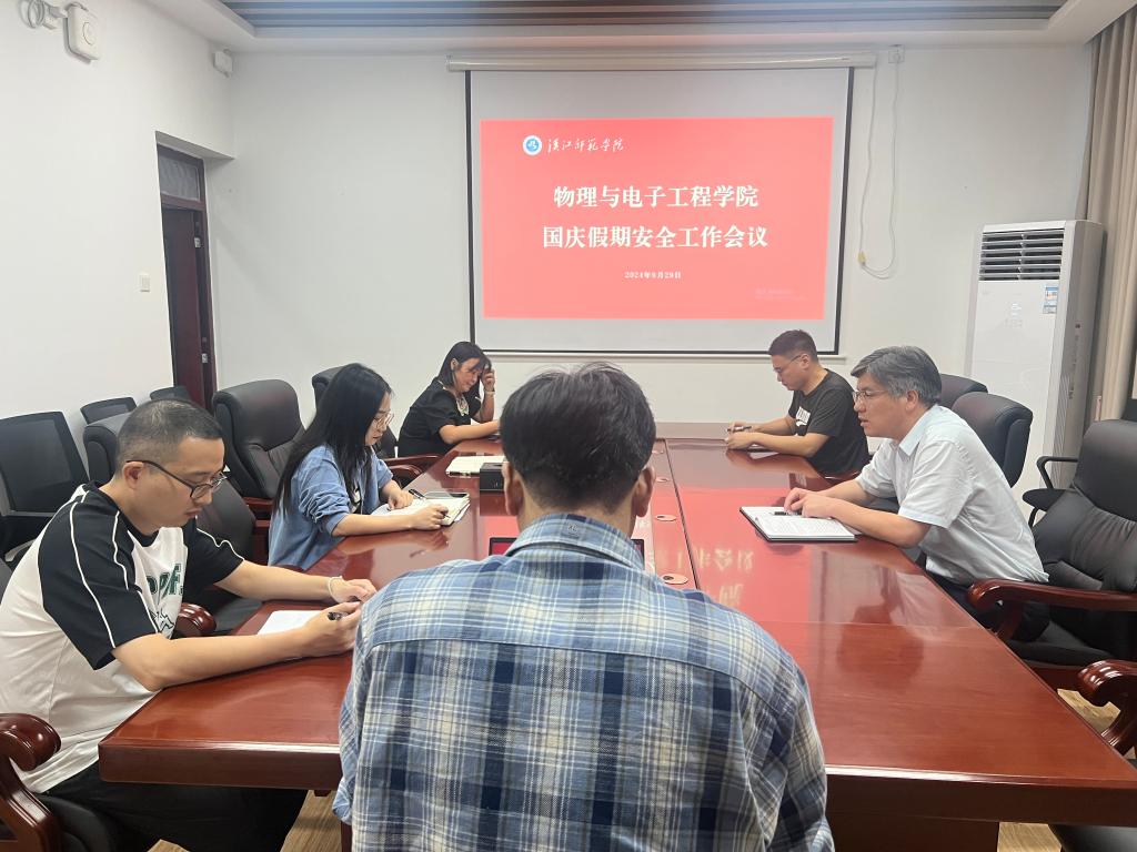 9月29日下午,beat365英国官方网站在崇文楼5楼会议室召开国庆假期安全工作会议,院分党委副书记戴俊、办公室主任曾虎、学工办主任尹诗雅和全体辅导员参加会议,会议由分党委书记唐传球主持。