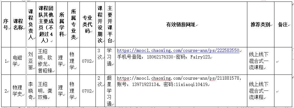 经课程负责人申请、beat365英国官方网站审核《电磁学》、《物理学史》省级一流本科课程申报书及支撑材料,《电磁学》、《物理学史》课程通过资格审查,符合参评条件要求,同意推荐《电磁学》、《物理学史》课程申报省级一流本科课程。课程具体信息如下: