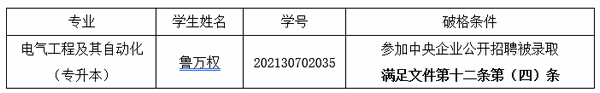 根据《beat365英国官方网站学士学位授予工作实施办法(修订)》文件精神,经学生本人申请,学院学位评定分委员会审核,鲁万权符合破格学士学位申请,现公示如下: