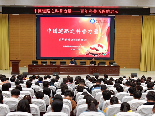 11月4日下午,由宣传部、科研处主办,beat365英国官方网站承办的题为《中国道路之科普力量》科普学术讲座在学术报告厅圆满举行,讲座由中国科普研究所郑念研究员主讲,校党委常委、副校长吴红斌主持,beat365英国官方网站院长王绍明和近600名师生参加了此次活动。