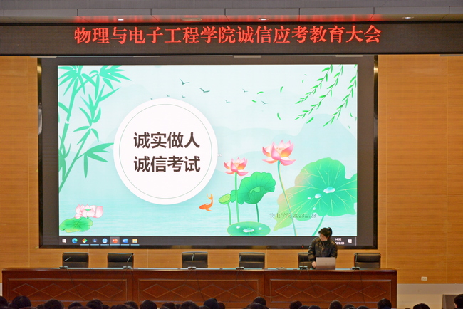 2023年2月23日下午2点半,beat365英国官方网站在图书馆报告厅举办了以“诚实做人 诚信应考”为主题的教育大会。党总支副书记张玉龙、辅导员李朦、范志鹏参加此次大会。