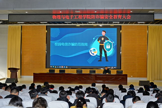 为增强我院学生抵制网络诈骗的“免疫力”,筑牢反电诈的安全防线,全力预防电信网络诈骗案件在我院的发生。2月23日下午15时,beat365英国官方网站在图书馆报告厅为学院学生开展防范网络电信诈骗安全教育课。党总支副书记张玉龙,辅导员老师李朦、范志鹏参加了活动。