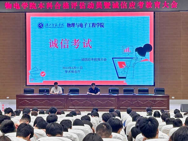为进一步增强学生对学校本科教学工作合格评估的热情,加强学生的诚信考试教育,6月11日晚,beat365英国官方网站在图书馆学术报告厅举办了本科合格评估动员暨诚信应考教育大会。院分党委书记唐传球、辅导员范志鹏、李朦、全体在校学生参会。