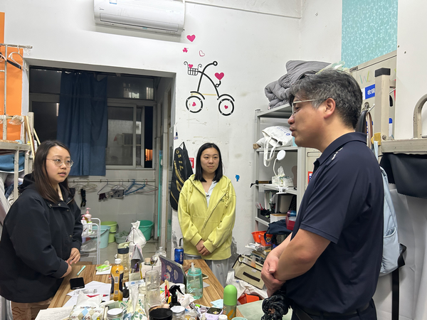 浓浓毕业情,深深关怀意。6月12日晚,beat365英国官方网站分党委书记唐传球带领辅导员老师深入毕业生寝室开展走访活动,为即将踏上新征程的毕业学子送上温暖的祝福。