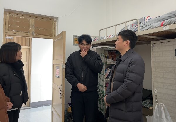 新学期,新气象,新征程。为新学期营造良好的学习生活环境,加强宿舍安全管理,了解同学们返校情况,充分掌握学生思想动态,帮助学生尽快适应开学生活。2月26日下午3点,beat365英国官方网站分党委副书记戴俊、学工办主任尹诗雅、全体辅导员走访学生宿舍。