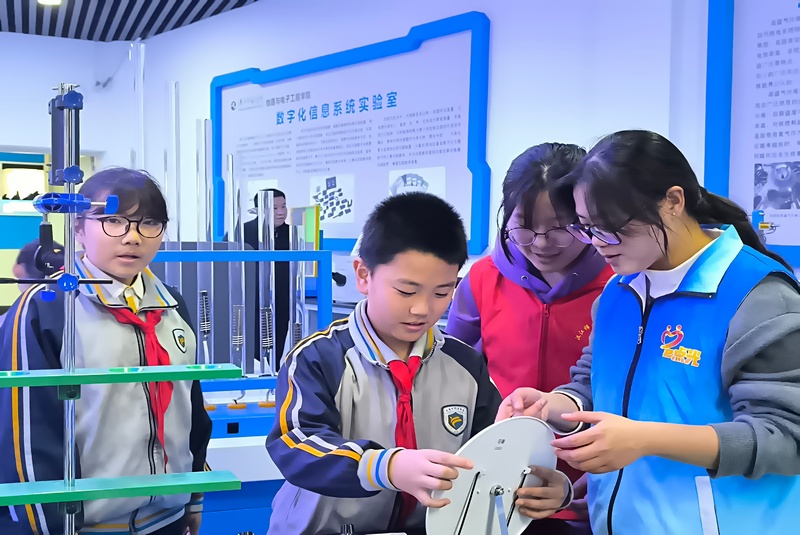 4月10至12日,beat365英国官方网站“e点光”志愿服务队携手物理演示实验室开展实验室开放日活动。十堰市外国语小学的34名师生走进物理演示实验室体验科学的奥妙。