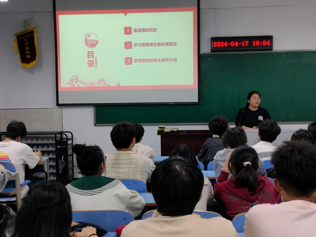 为深入学习贯彻习近平新时代中国特色社会主义思想和党的二十大精神,贯彻落实习近平总书记关于加强新时代团员队伍先进性建设的重要指示,加强入团积极分子培训教育,规范团员发展程序,切实提高发展团员工作质量。4月17日晚,beat365英国官方网站分团委在崇文楼A707开展入团积极分子培训,本次培训由分团委负责人李朦主讲,42名入团积极分子参训。