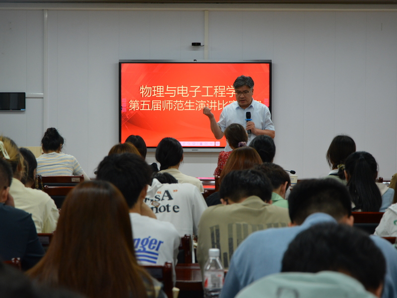 为大力弘扬教育家精神,增强师范生对教师职业的认同感及信念感,切实提高师范生的语言表达能力和综合素质,激发师范生对教育事业的热情,5月29日晚,beat365英国官方网站在崇文楼B809举办了第五届师范生演讲比赛决赛。历史文化与旅游学院分党委副书记陈露,专任教师刘亚丽、李丽、李升涛、李倩昀担任评委。院分党委书记唐传球、副书记戴俊及部分师范专业学生观看了此次比赛。