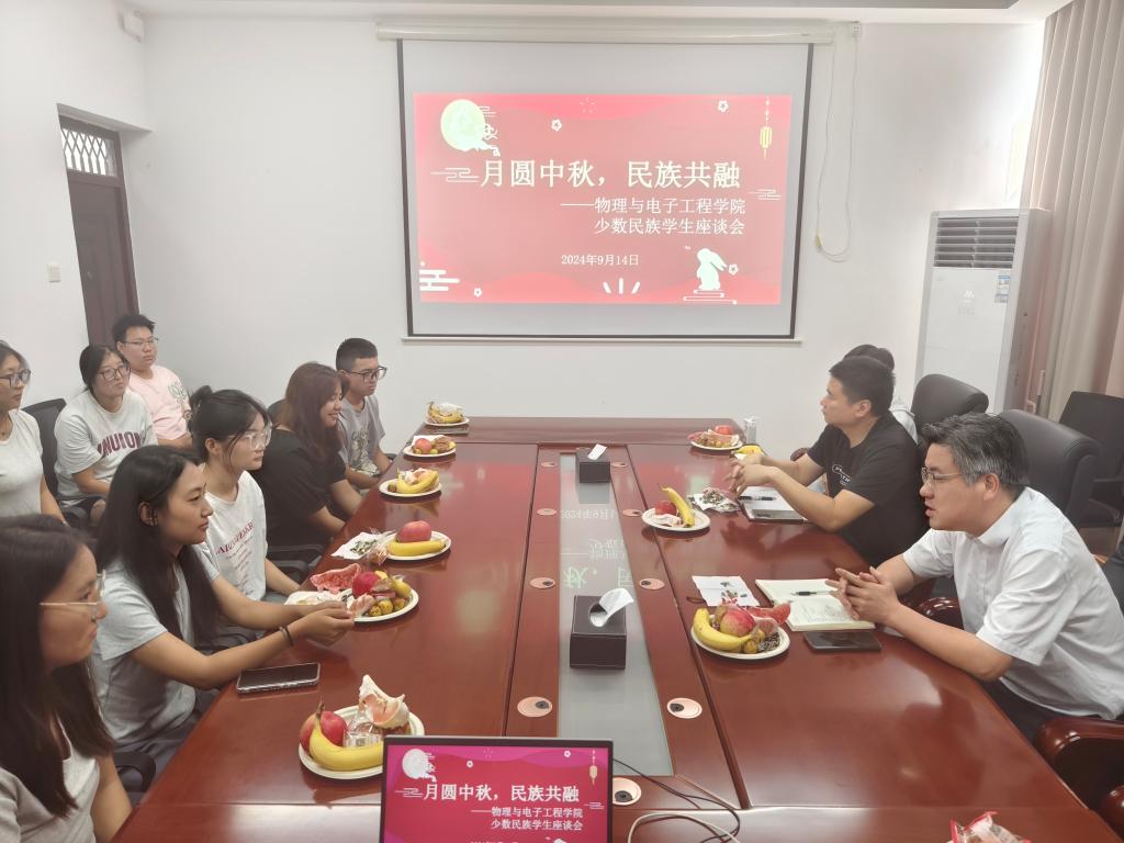 在中秋佳节即将到来之际,9月14日上午,beat365英国官方网站在崇文楼A503举办了少数民族学生座谈会。院分党委书记唐传球、分党委副书记戴俊、分团委负责人范志鹏以及14名来自不同民族的同学们参加了此次座谈会。