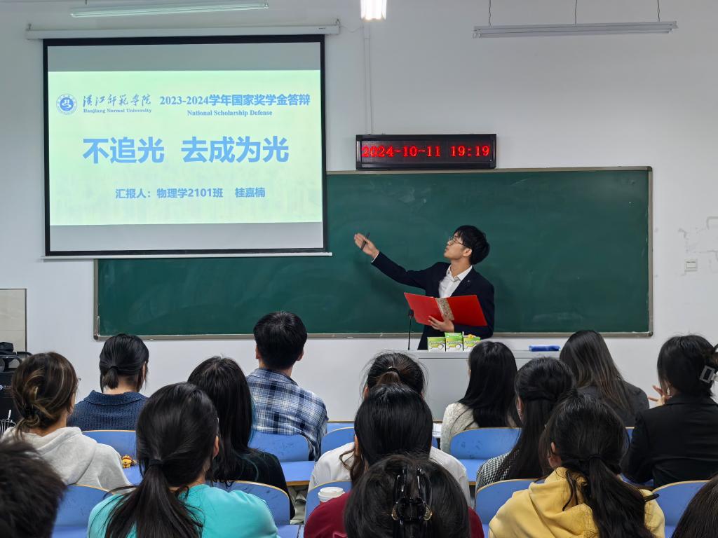 为扎实做好本年度国家奖学金评审工作,发挥优秀学子榜样引领作用,进一步加强学风建设。10月11日晚,beat365英国官方网站在崇文楼A509举办了国家奖学金答辩会。学工办主任尹诗雅、辅导员范志鹏、田梦谣、贺培应邀担任评委,各年级学生代表到场观摩学习。