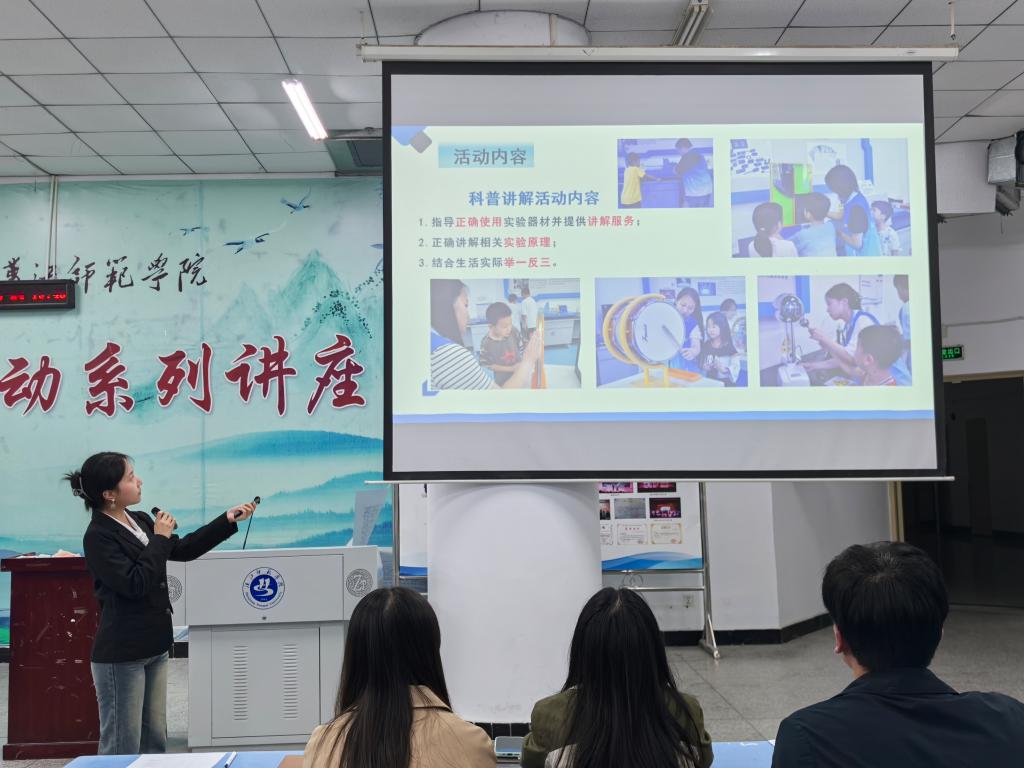 经各实践团队申报和学院遴选,此次共有7支优秀实践团队入围,各团队代表依次上台汇报。他们通过PPT展示、视频播放和现场讲解等方式,分别从活动组织、具体实施、实践成果等方面进行了展示,分享他们在社会实践中的所见所闻、所感所悟。汇报内容涵盖了乡村振兴、科普知识宣讲、普通话推广、环境保护、支教服务等多个领域,充分展示了青年学生的社会责任感和实践能力。最终,“点亮科学之光”小分队等三支团队荣获“优秀暑期社会实践团队”称号,杨佳敏等七位同学荣获“先进个人”称号。
