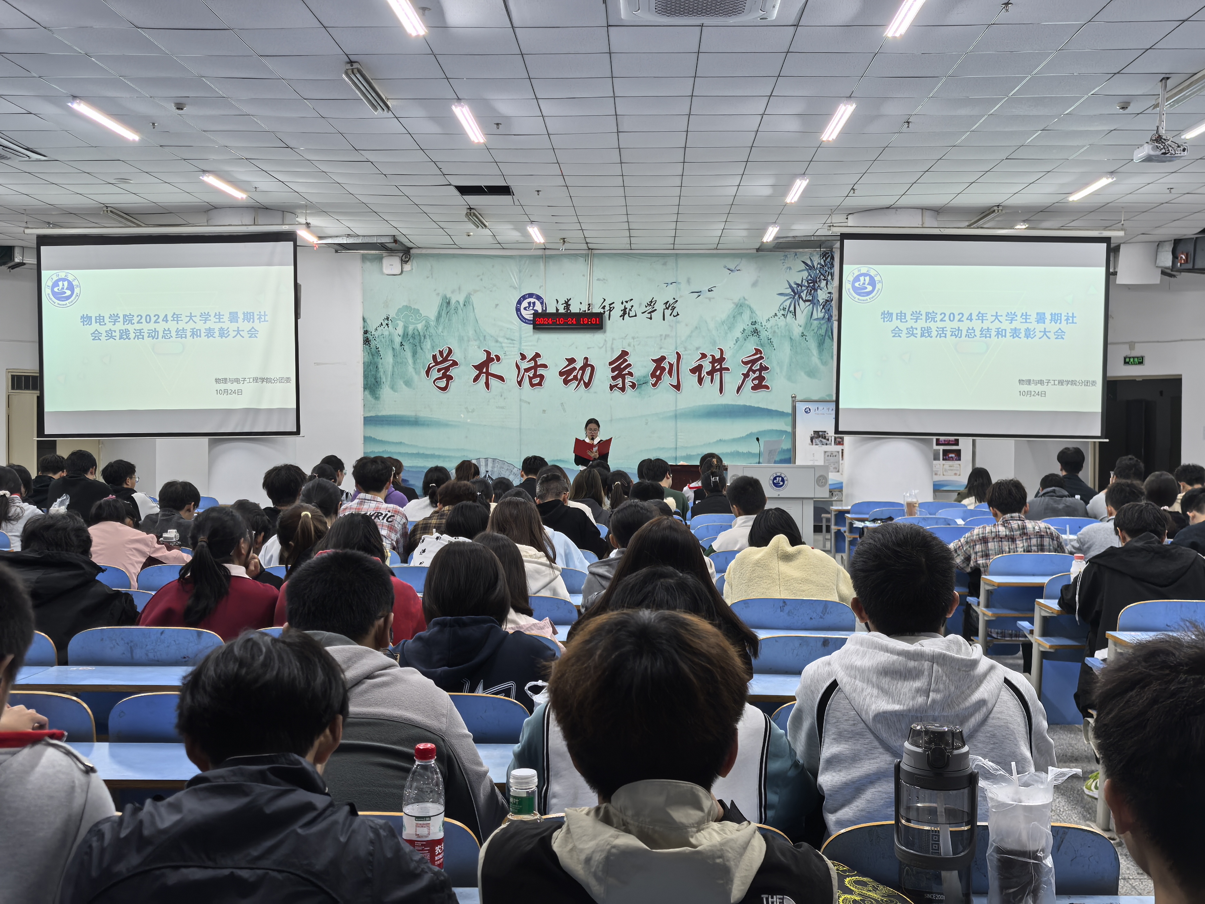 10月24日晚,beat365英国官方网站2024年暑期社会实践总结暨表彰大会在崇文楼C201举行,院分党委副书记戴俊,分团委负责人范志鹏,辅导员田梦谣、贺培参加会议并担任评委,各实践团队成员和200余名2024级学生现场观摩学习。