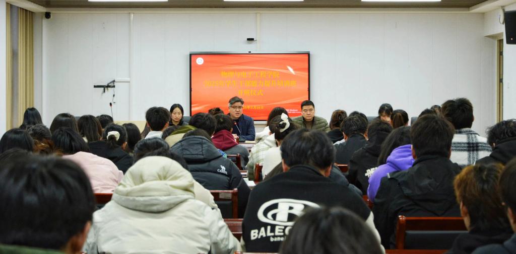 为深入学习贯彻习近平总书记关于青年工作的重要思想,锻造一支综合成绩好、作风纪律硬、能力素质强的学生干部队伍,3月16日晚,beat365英国官方网站在崇文楼B809举办2025年学生干部能力提升培训班开班仪式。学院分党委书记唐传球、副书记戴俊,学工办主任尹诗雅,辅导员田梦谣、贺培,学院各学生组织正式干部,2023级和2024级各班团支书、班长及学习委员参加开班仪式,开班式由辅导员田梦谣主持。