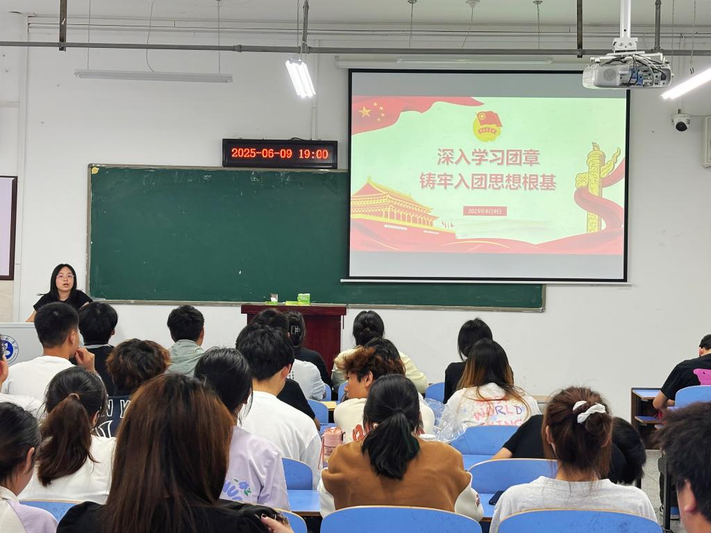 为进一步增强入团积极分子对共青团组织的认识和理解,引导其树立正确的入团动机,6月9日晚7点,beat365英国官方网站于崇文楼A405开展了以“深入学习团章,筑牢入团思想根基”为主题的入团积极分子团课培训。本次培训由辅导员田梦谣老师主讲,43名入团积极分子参加了此次培训。
